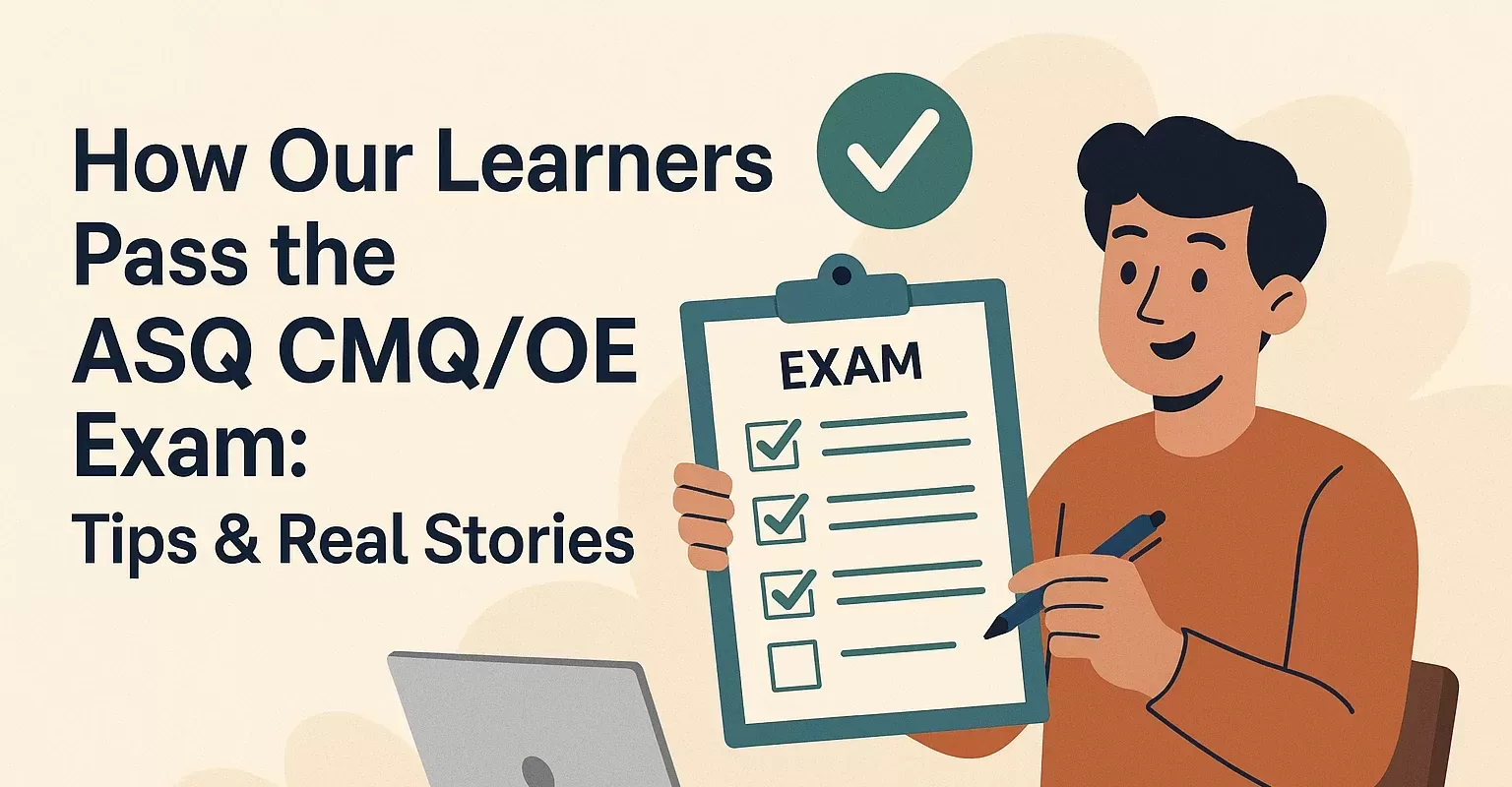We are honored to walk alongside professionals as they prepare for and pass the ASQ CMQ/OE exam. With the right strategy, training, and mindset, success is well within reach.