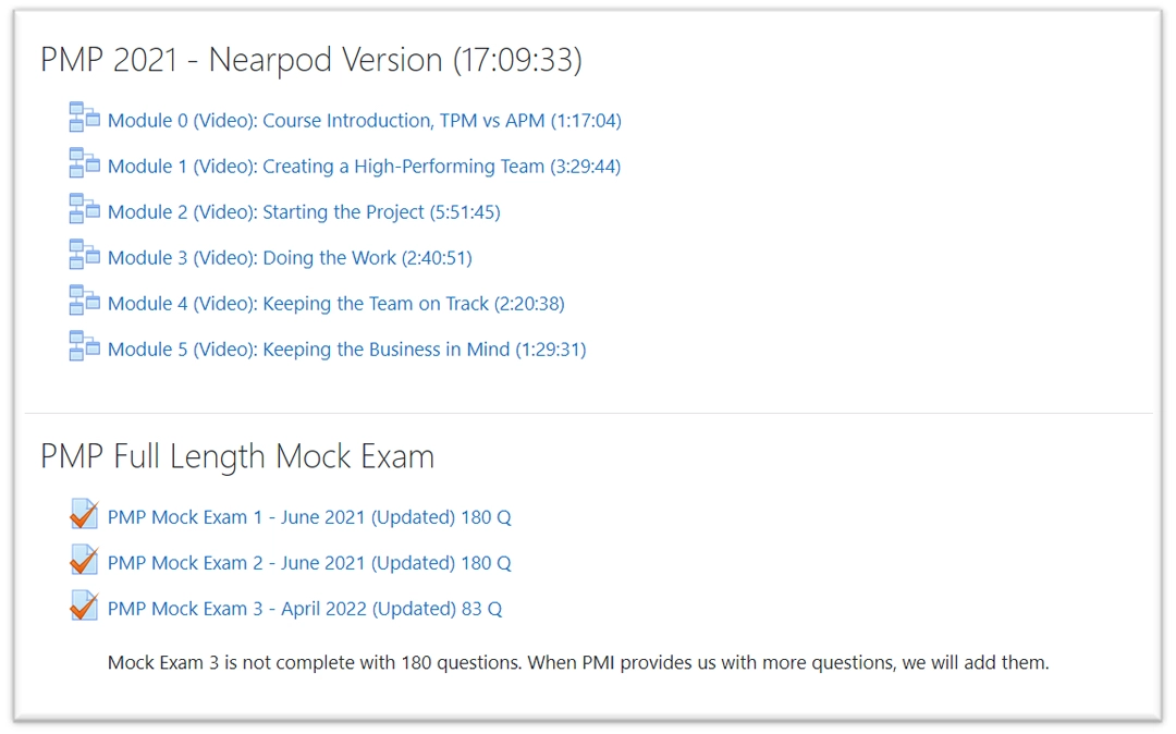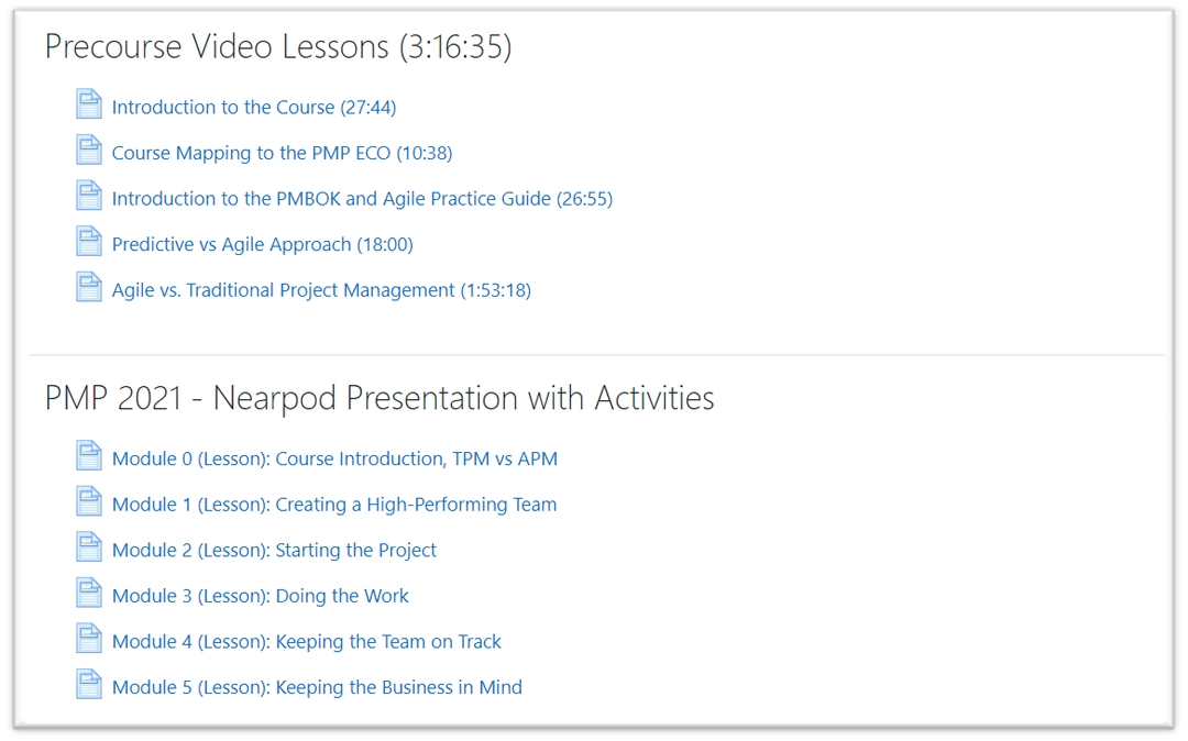 - Access to the PMI Learning Management System (PMI-LOchoice) where you will get the following: